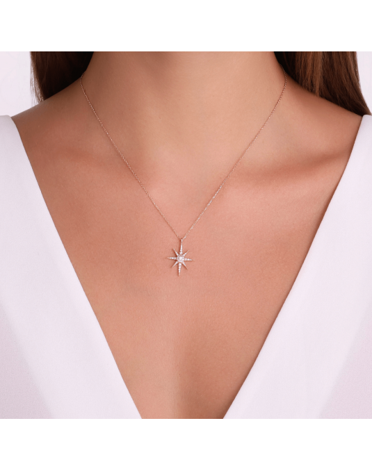 Grandinėlė su pakabuku - Žvaigždė su natūraliais deimantais. Baltas auksas